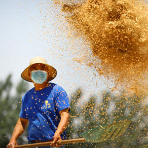 “三夏”时节,安徽省淮北市248万亩小麦迎来收获期,当地农民抓住晴好天气抢收小麦。