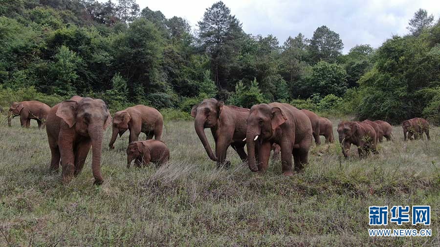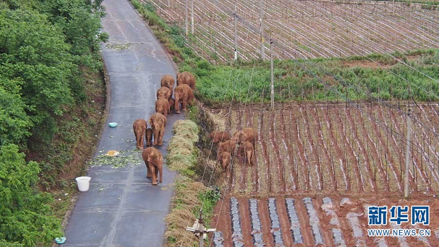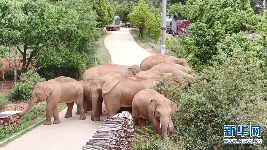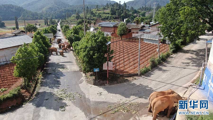 6月4日,象群在晋宁双河乡。新华网发(供图)