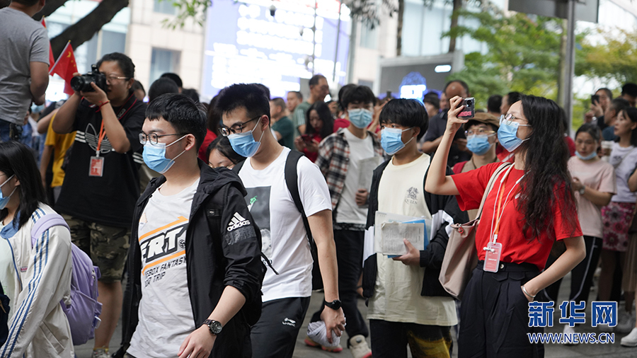 6月7日,2021年普通高校招生全国统一考试(以下简称“高考”)正式拉开序幕。据悉,今年重庆全市普通高校考试招生报名总人数28.95万人。同时,今年也是重庆市统一高考实行“3+1+2”模式新高考的第一年。图为早上8点,重庆一中考点的考生正走进考场。新华网 刘文静 摄