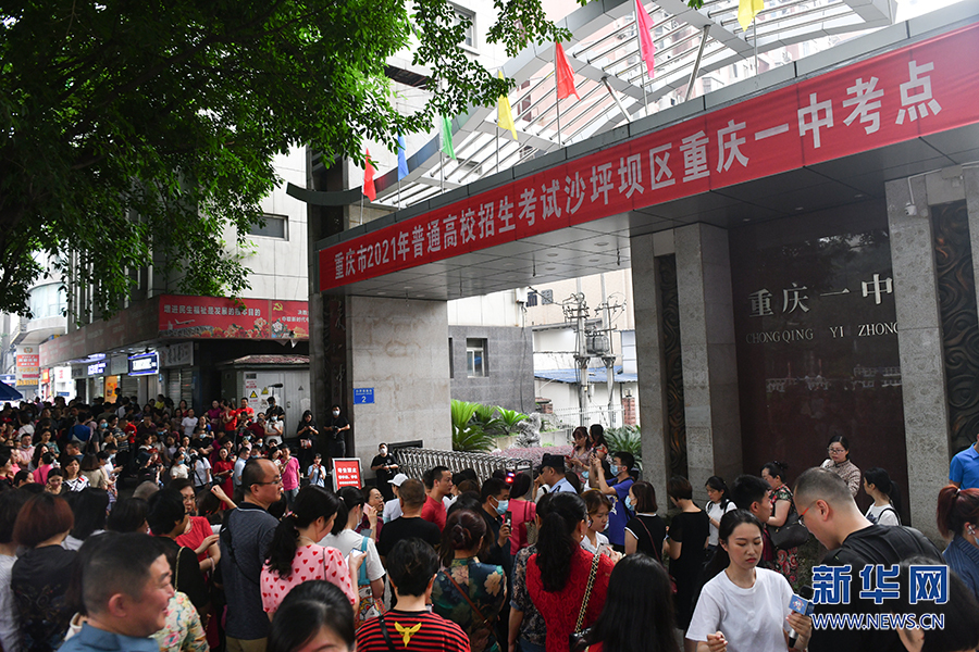 重庆一中考点门口送考的家长。新华网 耿骏宇 摄