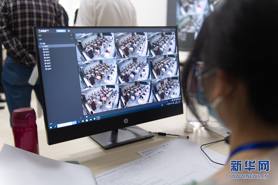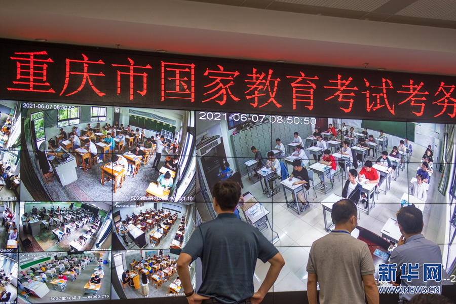 重庆市教育考试院内,重庆市国家教育考试考务指挥中心可以监看全市各考点考场内的实时情况。新华网 耿骏宇 摄