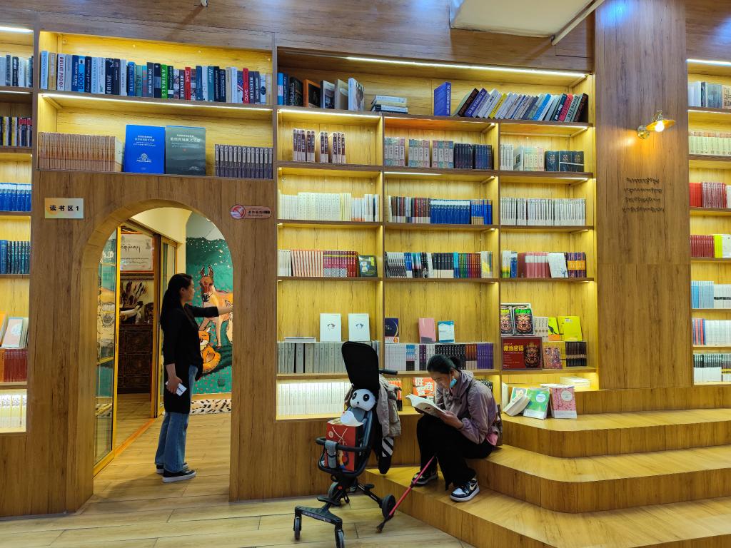 “阅读与人生相伴,书香与梦想齐飞”。走在拉萨市宗角禄康公园北侧,这副对联映入眼帘。走进书屋,只见各式书籍整齐排列,桌子上摆放着报纸和杂志。61岁的贡嘎挑选了一本藏语读物,坐在靠门的位置,享受自己的闲暇时光。