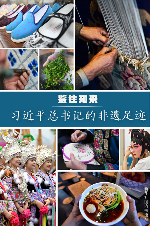 在广州粤剧艺术博物馆同粤剧票友亲切交谈,希望他们把粤剧传承好发扬好;在杭州西溪湿地看手工炒制龙井茶的技艺,鼓励他们把传统手工艺等非物质文化遗产传承好;在潮州观看非遗项目传承人代表的现场制作演示,了解潮州传统技艺传承情况……对于非物质文化遗产的传承,习近平总书记念兹在兹。