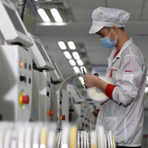 工作人员在联宝(合肥)电子科技有限公司生产车间内忙碌。(新华社记者周牧摄)