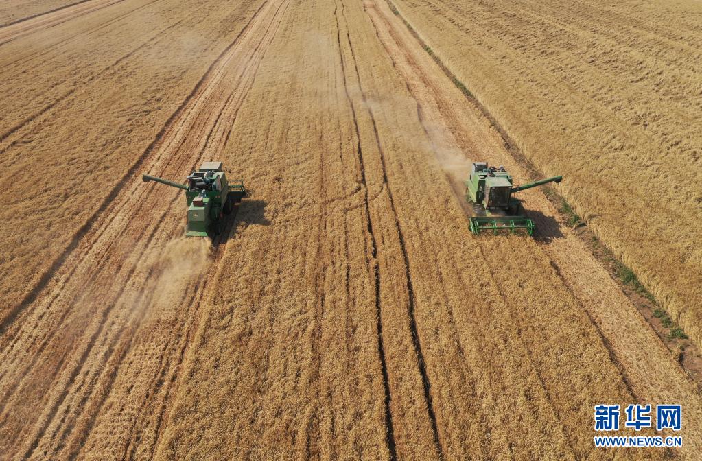 “三夏”时节,黄泛区农场麦浪锦绣,沃野流金,大型收割机穿梭来往,又是一年好收成。