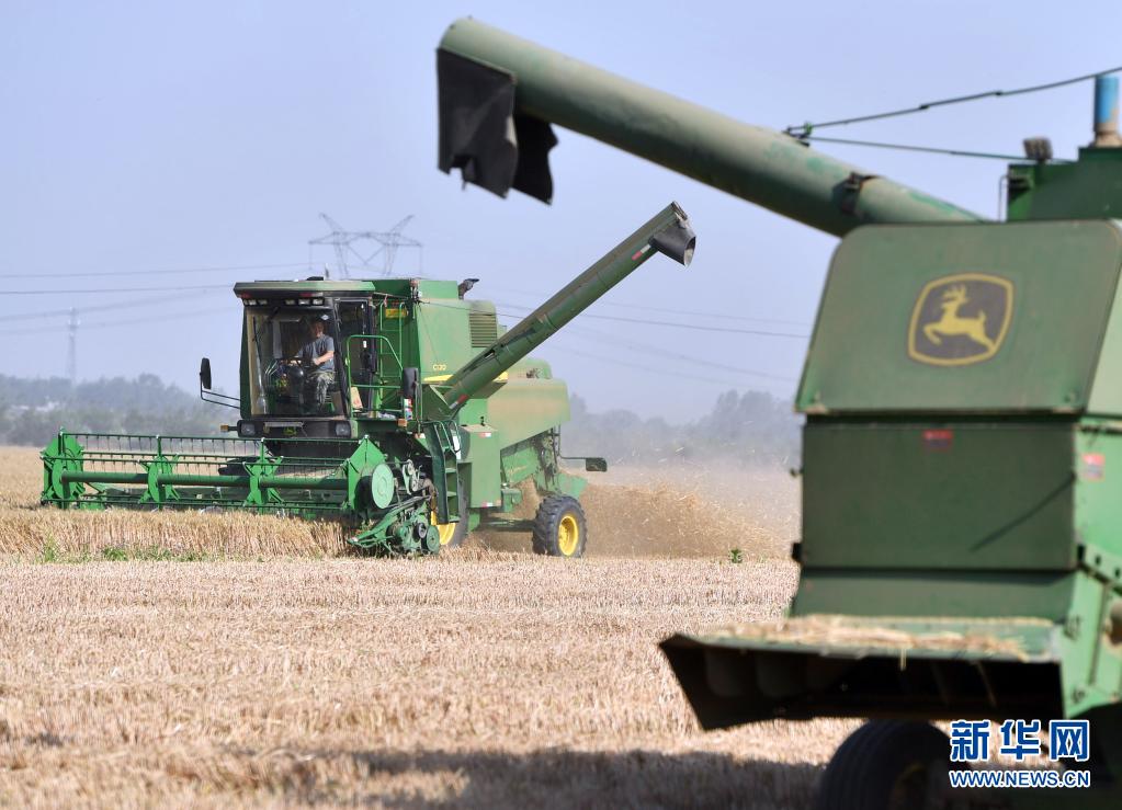 “三夏”时节,黄泛区农场麦浪锦绣,沃野流金,大型收割机穿梭来往,又是一年好收成。