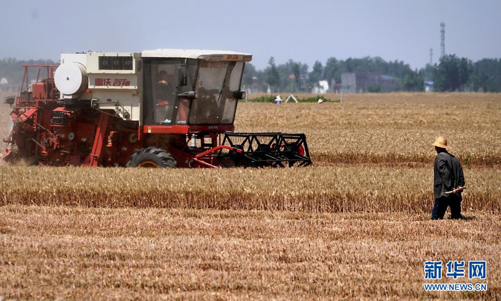 “三夏”时节,黄泛区农场麦浪锦绣,沃野流金,大型收割机穿梭来往,又是一年好收成。