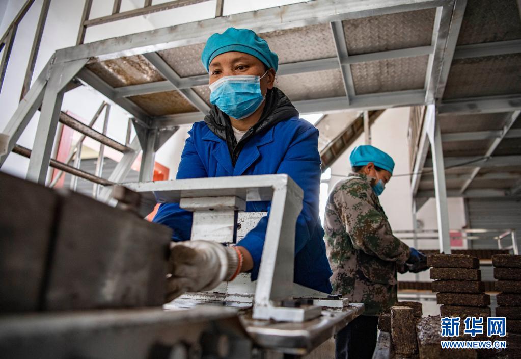 西藏易贡茶场的工人在制作砖茶(4月1日摄)。新华社记者 孙非 摄