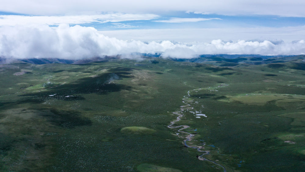 这是2020年8月14日拍摄的长江南源当曲河道(无人机照片)。