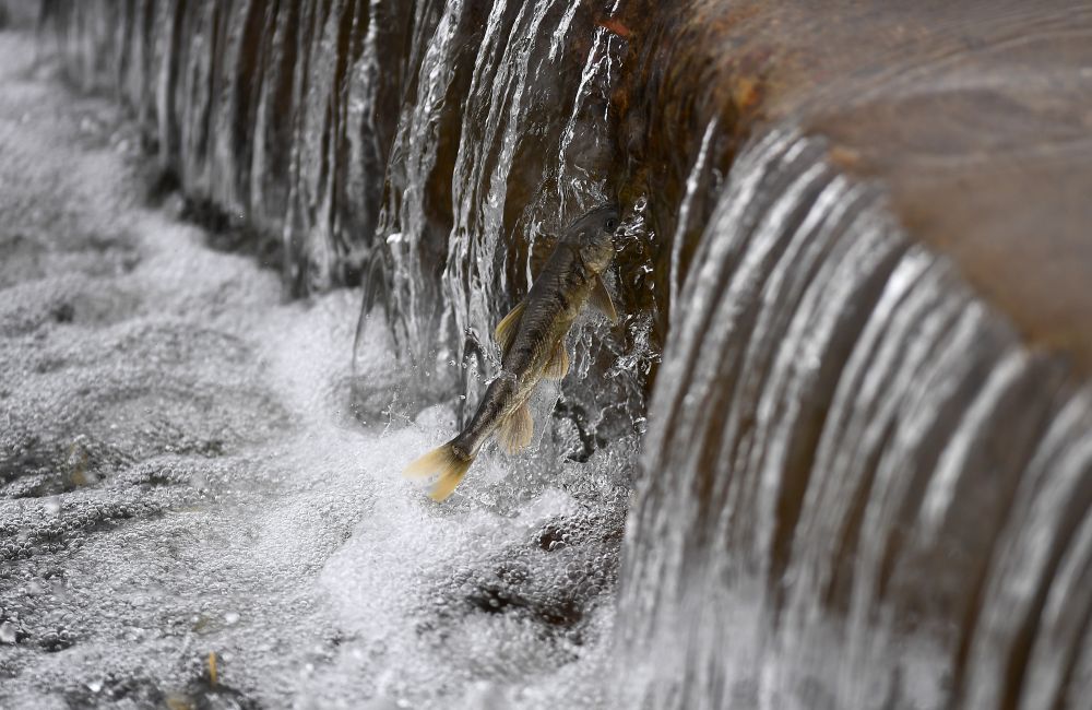 2019年7月6日,在青海省刚察县沙柳河里,一条湟鱼在洄游。