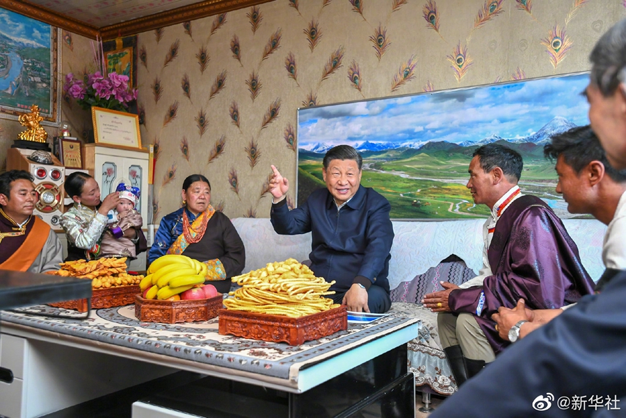 8日下午,习近平总书记来到海北藏族自治州刚察县沙柳河镇果洛藏贡麻村,走进牧民索南才让家中,看望慰问藏族群众。索南才让说,牧民生活好,全靠党的政策好,衷心感谢党、衷心感谢总书记。习近平指出,我们党成立一百年了,为什么老百姓衷心拥护中国共产党?因为我们党始终全心全意为人民服务、为各民族谋幸福。我们一百年来取得的成绩,赢得了民心,在建设社会主义现代化国家新征程上,我们要走得更好。(文字记者:张晓松、朱基钗;摄影记者:李学仁、谢环驰)