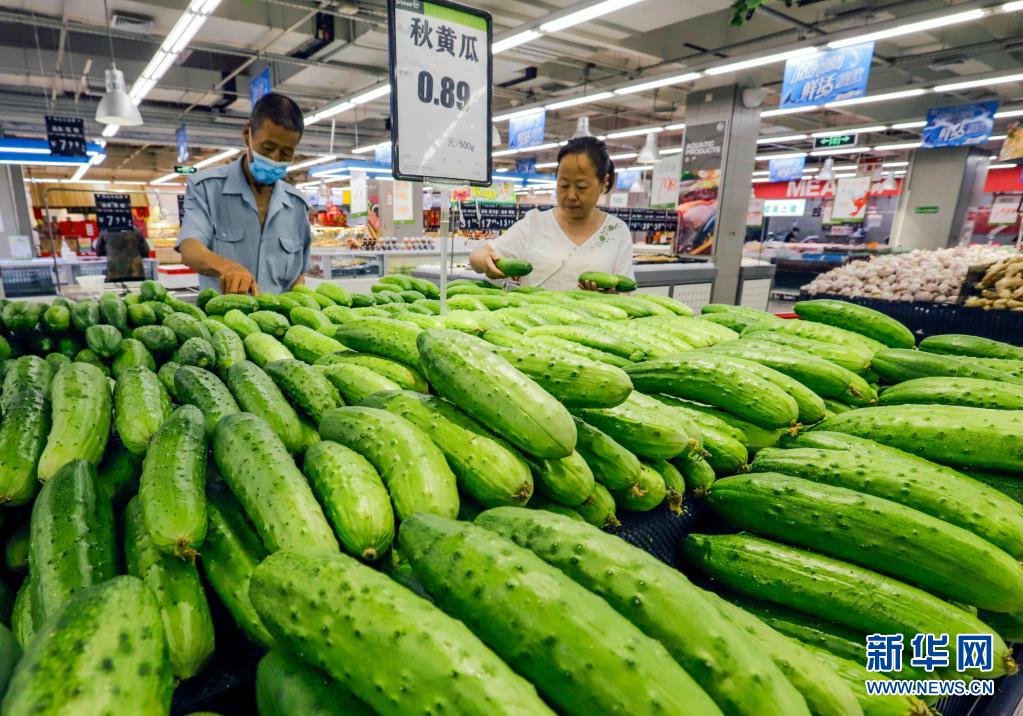 6月9日,消费者在河北省遵化市一家超市选购黄瓜。新华社发(刘满仓摄)