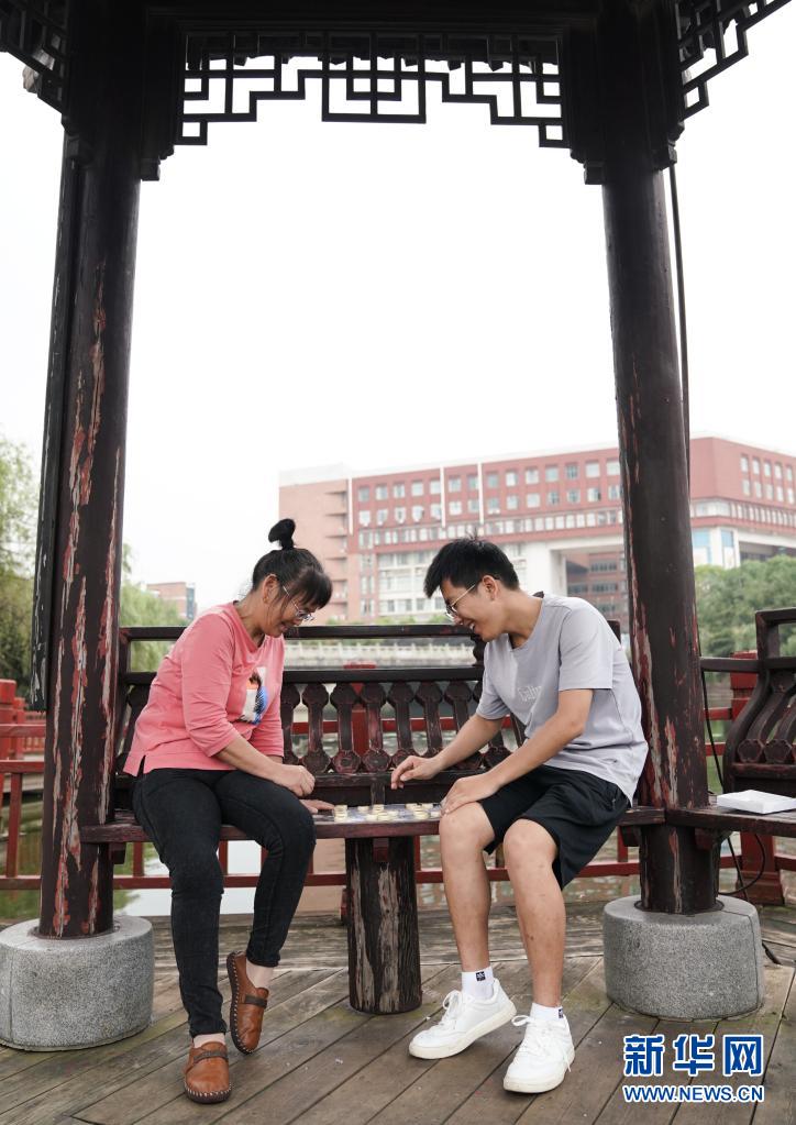 6月2日,赵建军和母亲一起在校园内下棋。新华社记者胡晨欢摄