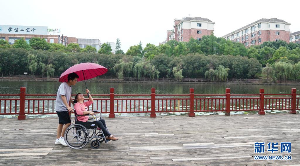 6月2日,赵建军和母亲在校园内散心。新华社记者胡晨欢摄