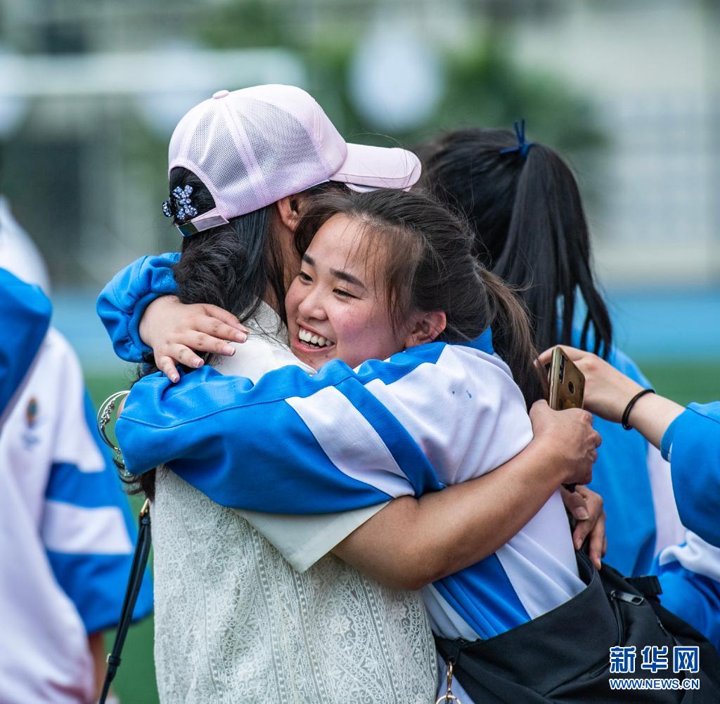 6月9日,乌当中学高三学生和老师拥抱。