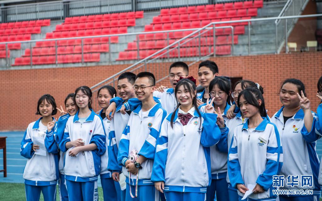 6月9日,乌当中学高三学生在操场上拍照留念。