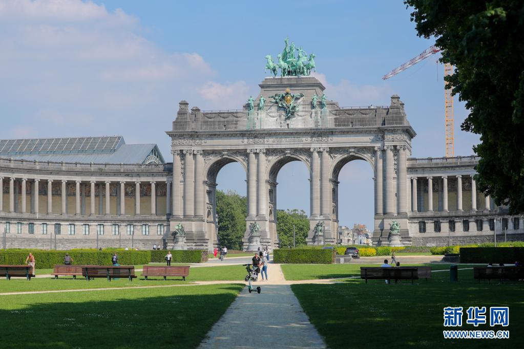 6月9日,人们在比利时布鲁塞尔的五十周年纪念公园休闲。