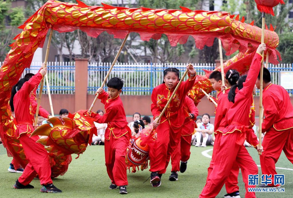当日,安徽省合肥市蚌埠路第二小学在校园里举行迎端午主题活动,孩子们通过参加舞龙表演等民俗活动,感受传统文化,迎接端午节的到来。