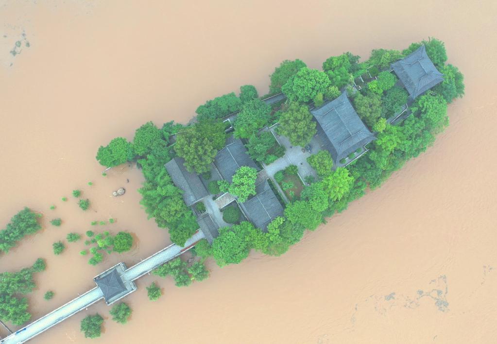 2021年5月21日,湖南省衡阳市的石鼓书院被洪水围困。新华社发(曹正平 摄)