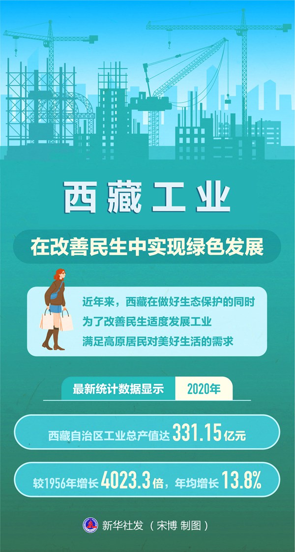 新华社拉萨6月10日电(记者金一清、董琳娜)近年来,西藏在做好生态保护的同时,为了改善民生适度发展工业,满足高原居民对美好生活的需求。最新统计数据显示,2020年,西藏自治区工业总产值达331.15亿元,较1956年增长4023.3倍,年均增长13.8%。