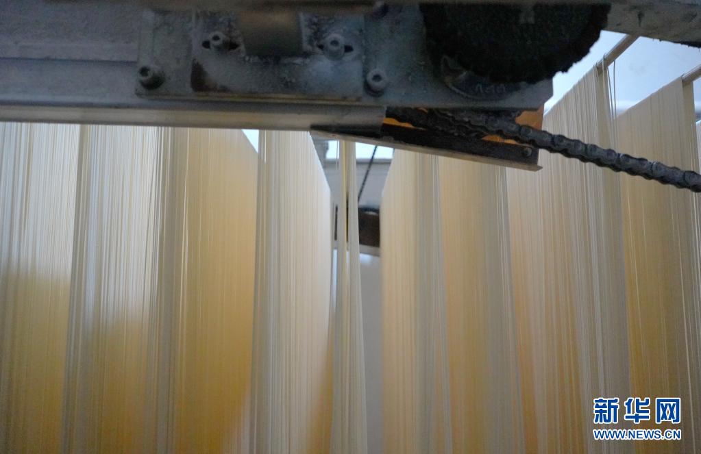 6月9日,在邢台沙河市金沙河集团的挂面车间,面条在烘房里进行干烘。新华社记者 金皓原 摄