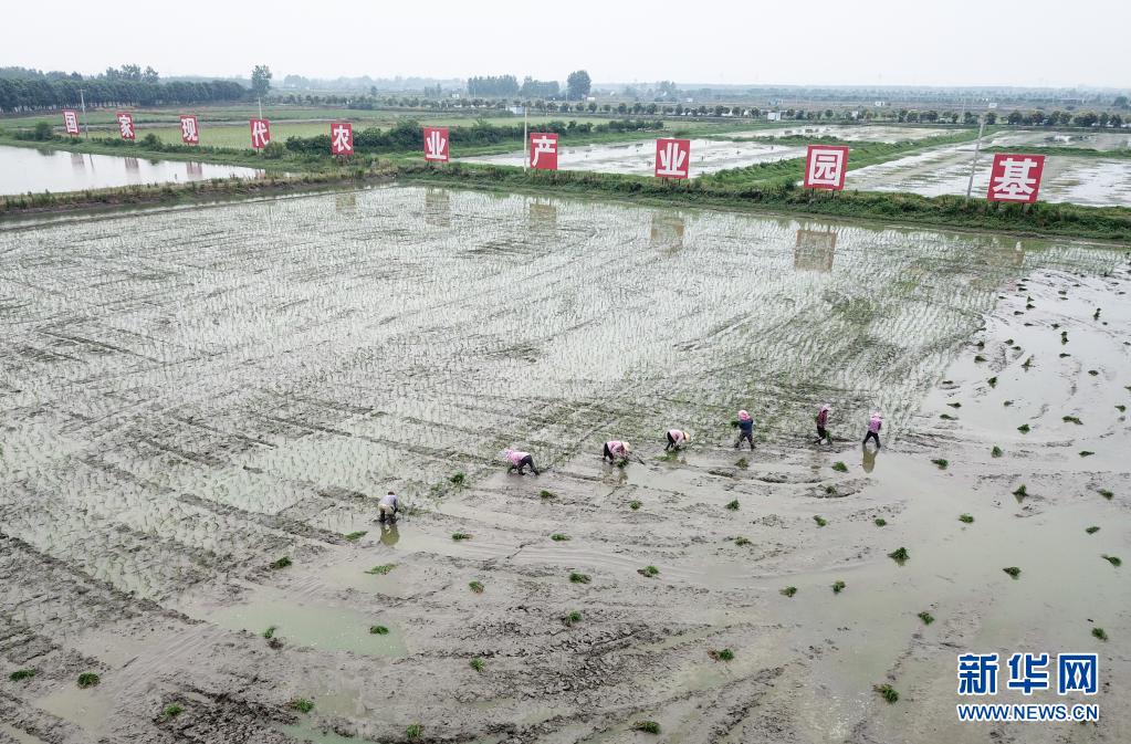 位于湖北省潜江市龙湾镇的虾稻共作繁养基地(6月9日摄)。