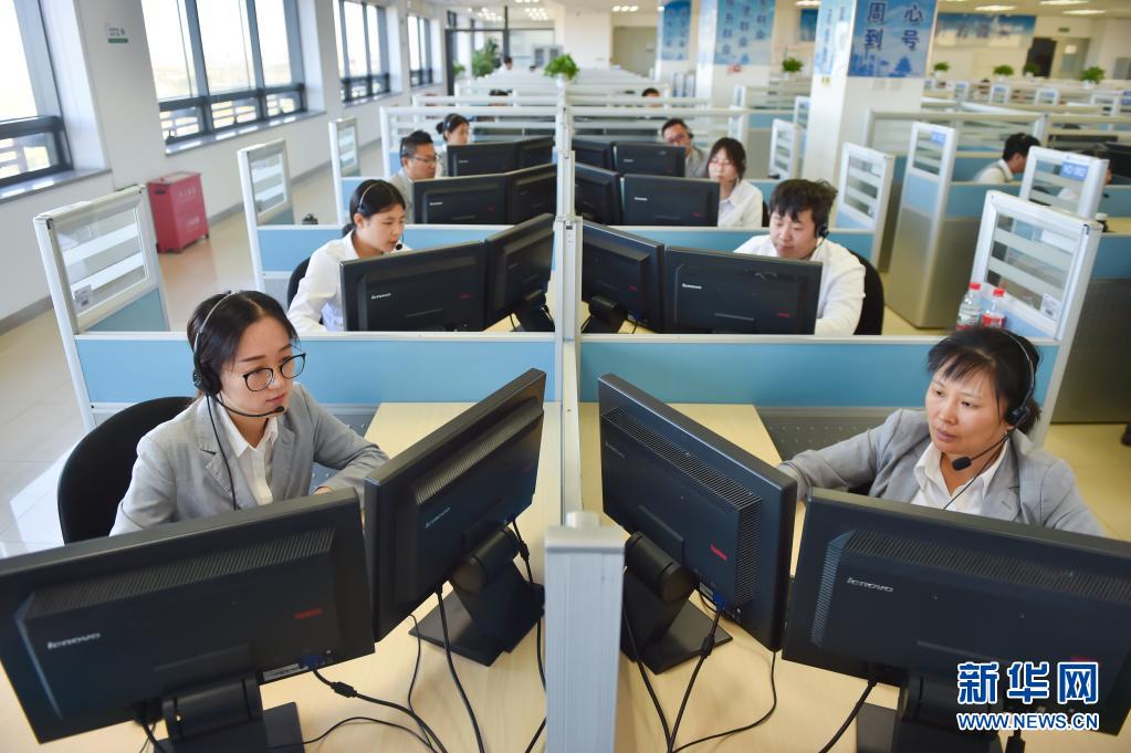在位于北京亦庄的12345市民热线话务大厅,工作人员接听热线电话(2019年11月13日摄)。新华社记者 彭子洋 摄