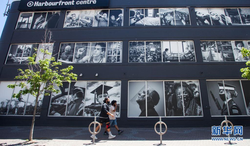 6月12日,在加拿大多伦多,人们从一组新冠疫情主题的图片前走过。