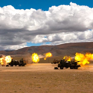 驻藏第77集团军某旅在演练中进行火炮实弹射击(2017年10月19日摄)。新华社发(王庆东 摄)