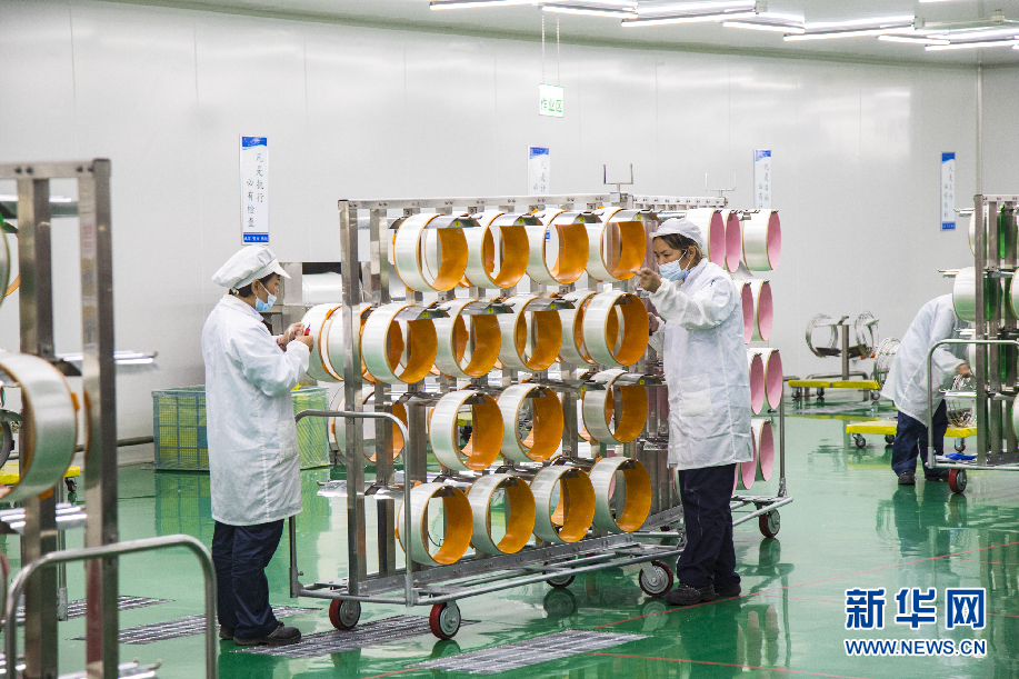 湖北联新显示科技有限公司无尘车间内,工人正赶制订单。该公司总投资20亿元,分两期建设,主要生产5G智能终端中大尺寸触摸屏、液晶显示模组及触控显示一体化产品。