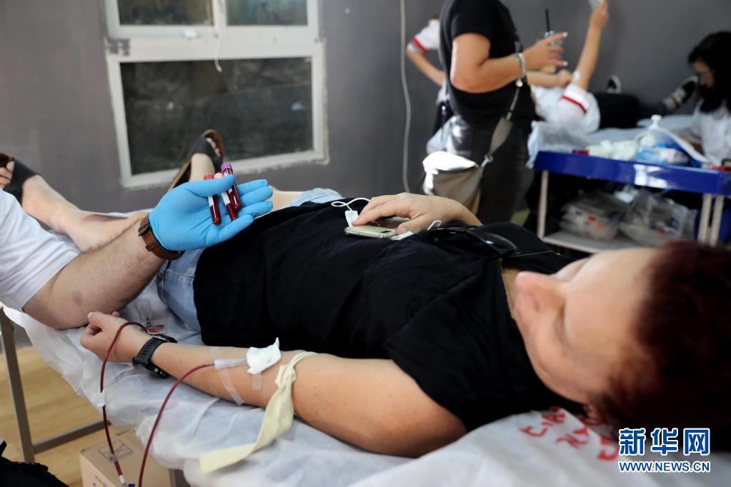 6月14日,志愿者在以色列中部城市莫迪因献血。新华社发(吉尔·科恩·马根摄)