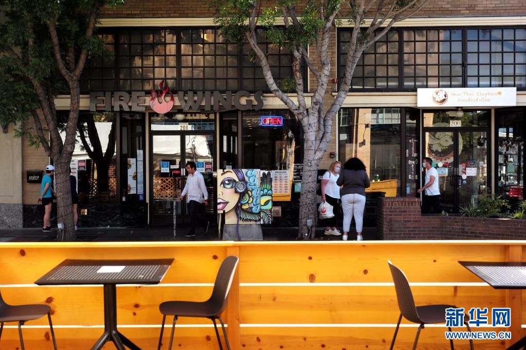6月14日,人们从美国加利福尼亚州北部圣马特奥街头走过。