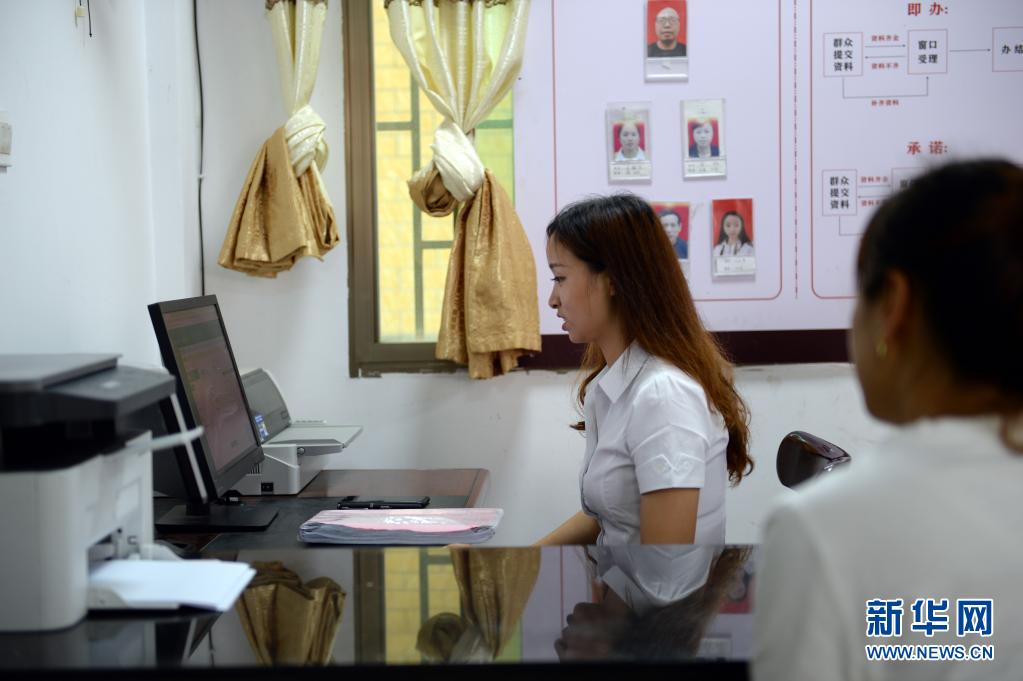 王亚琴(左)在湖南省衡阳市衡南县三塘镇罗亮泗村综合服务中心工作(6月10日摄)。新华社记者 陈振海 摄