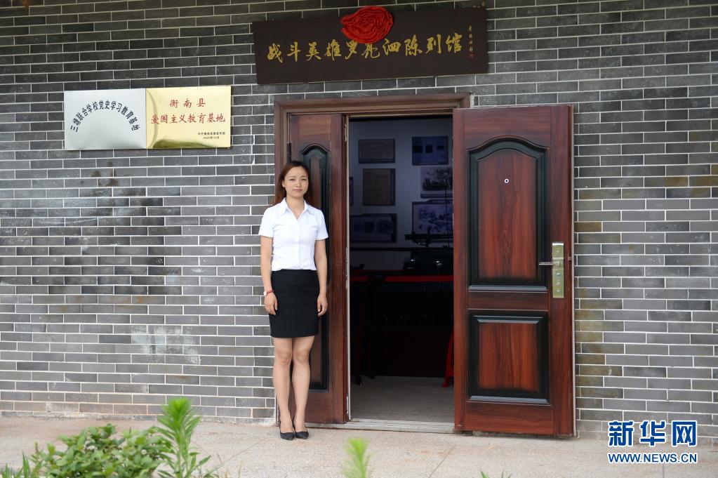 这是6月10日在湖南省衡阳市衡南县三塘镇“战斗英雄罗亮泗陈列馆”前拍摄的王亚琴。新华社记者 陈振海 摄
