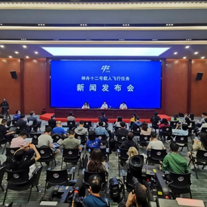 6月16日,神舟十二号载人飞行任务新闻发布会在酒泉卫星发射中心召开(手机拍摄)。新华社记者 琚振华 摄