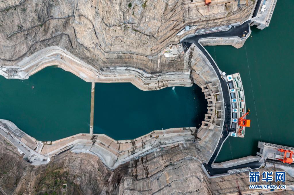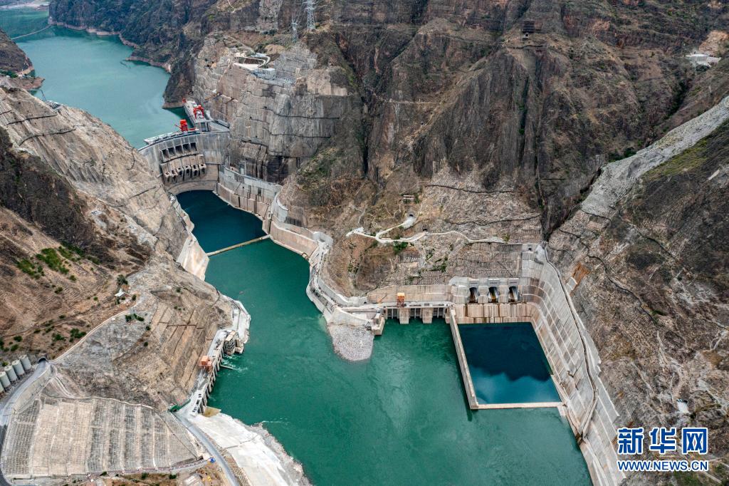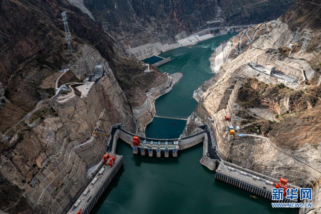 空中俯瞰乌东德水电站全景(6月16日摄,无人机照片)。新华社记者 江文耀 摄