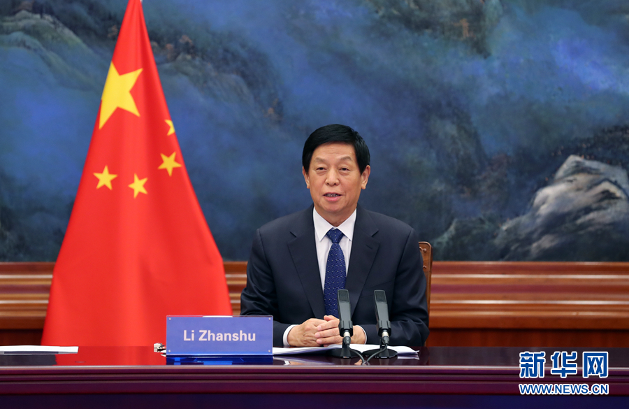 6月17日,全国人大常委会委员长栗战书在北京人民大会堂以视频方式同越南国会主席王庭惠举行会谈。新华社记者 姚大伟 摄