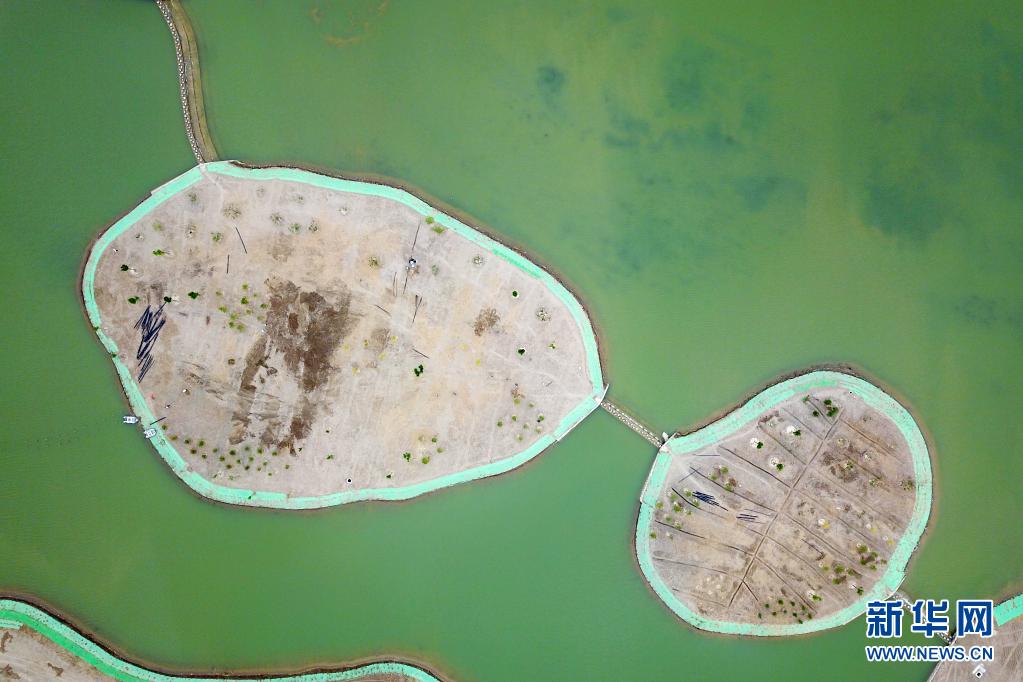 这是6月10日拍摄的临泽县临平路乡村振兴带水系连通建设现场(无人机照片)。