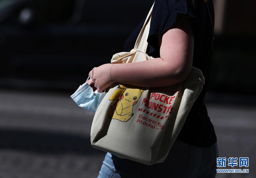 6月17日,一名女子手拎口罩走在法国巴黎香榭丽舍大街上。