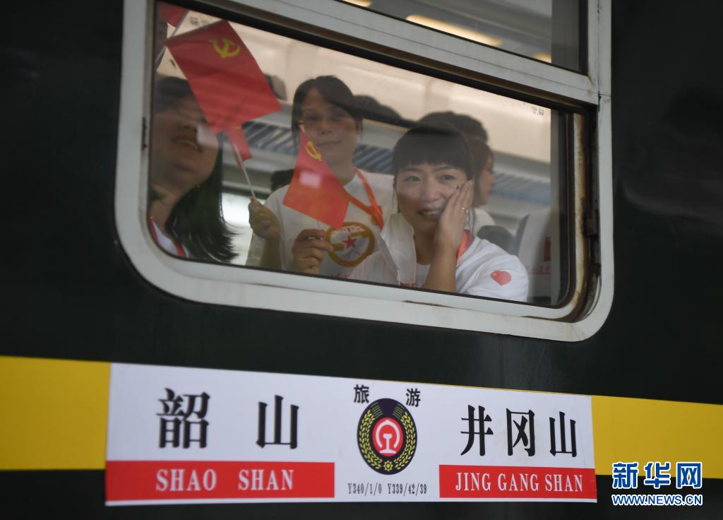 6月18日,乘客在首趟韶山至井冈山红色专列上。新华社记者 薛宇舸 摄