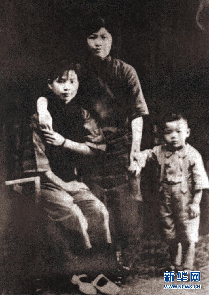 陈鹄和母亲徐全直(中)在上海(资料照片)。新华社发(陈潭秋故居纪念馆供图)