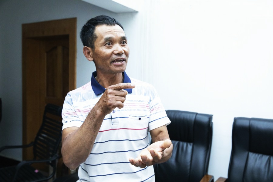 6月14日,毕仕学在跟记者讲述“象宝宝”的故事。赵普凡摄