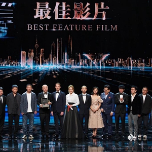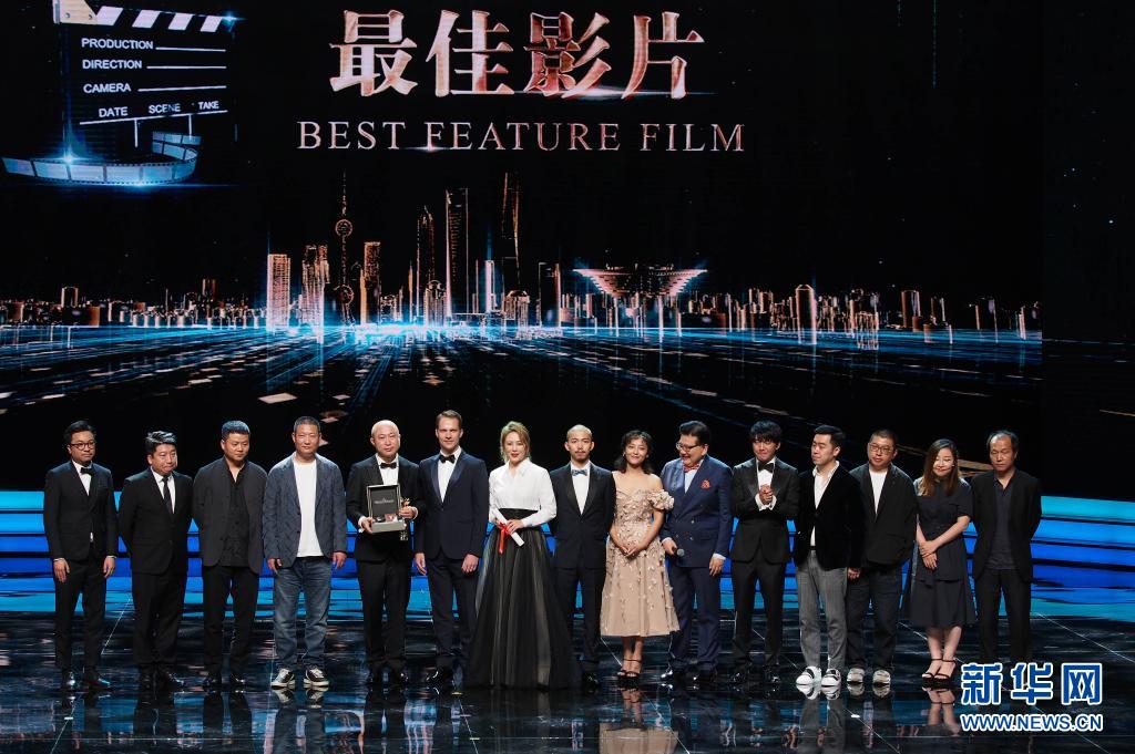 6月19日,获得金爵奖最佳影片的中国影片《东北虎》剧组上台领奖。新华社记者 任珑 摄