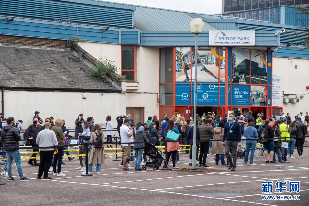 6月19日,人们在英国伦敦一家新冠疫苗接种中心外排队。