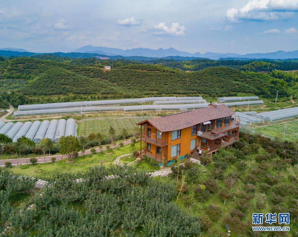 6月19日,游客在建宁县溪口镇枫源村桃李观赏园内一处民宿休憩(无人机照片)。