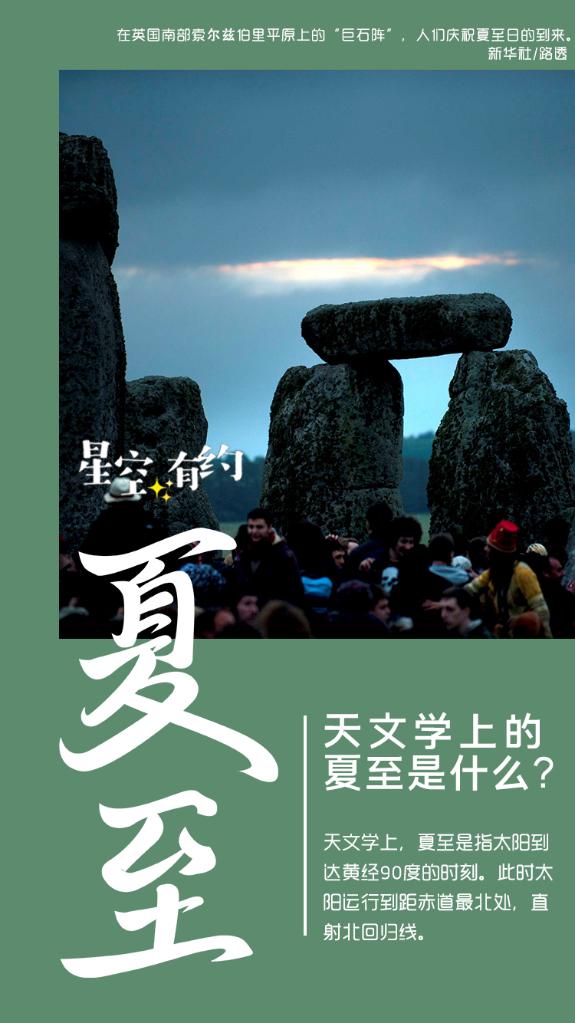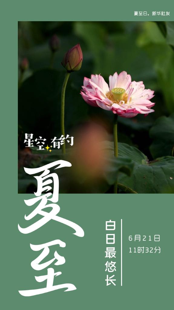新华社南京6月20日电(记者王珏玢)《中国天文年历》显示,北京时间6月21日11时32分迎来农历二十四节气中的“夏至”。夏至日时,北半球白昼最长,正午的太阳最高,垂直物体的影子最短。