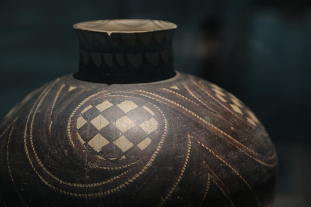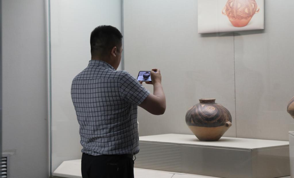 6月19日,观众观赏拍摄马家窑文化彩陶珍品展上的展品。新华社记者马莎摄