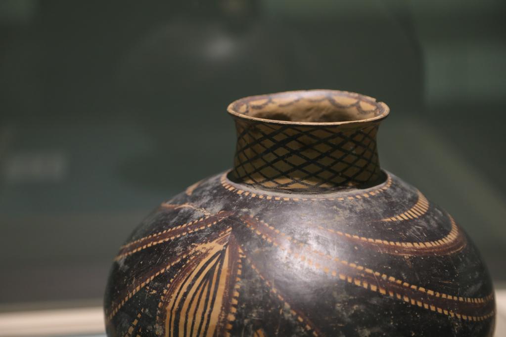 马家窑文化彩陶珍品展上的展品。新华社记者马莎摄