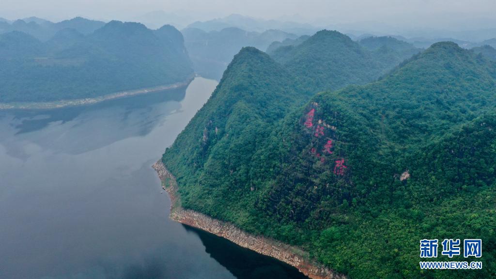 江界河“乌江天险”石刻(5月20日摄,无人机照片)。新华社记者 欧东衢 摄