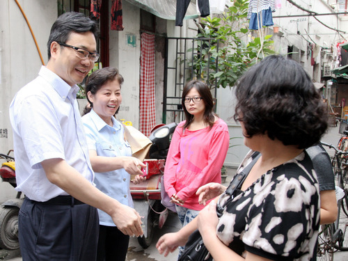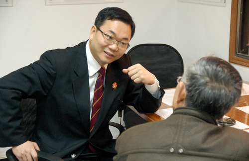时任上海市长宁区人民法院院长的邹碧华在接待起诉当事人。(资料照片)